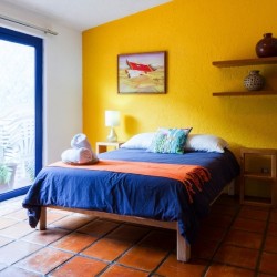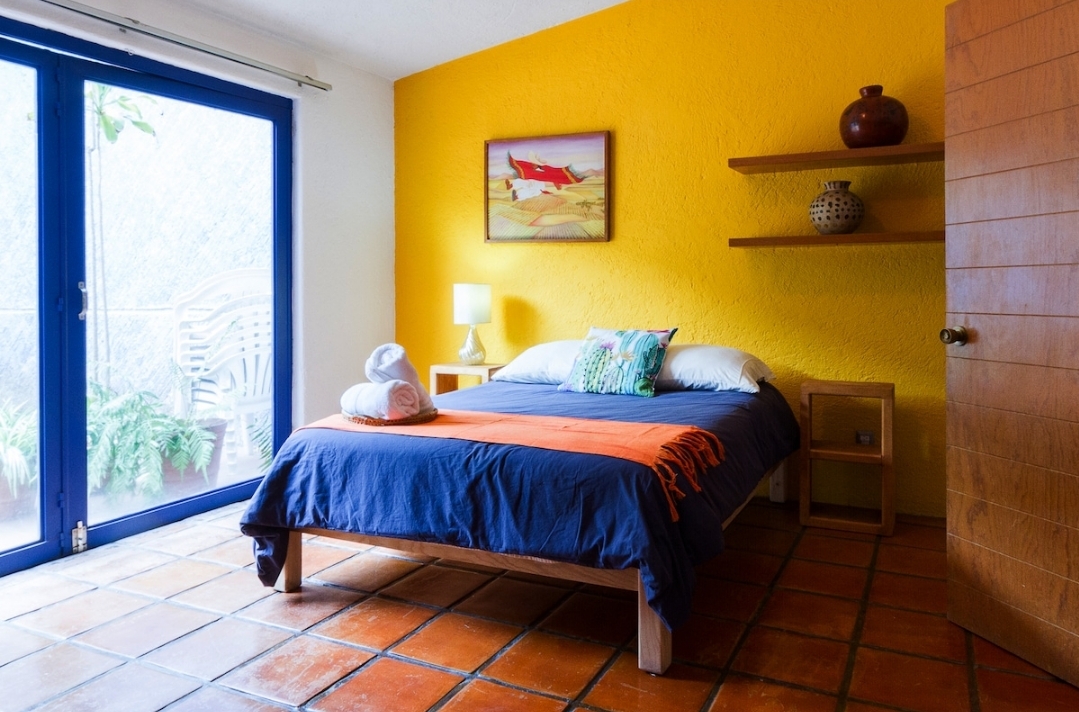 Recámara en planta baja en amplia casa con patio central mexicano ideal para familias, grupos de amigos y amantes de la arquitectura y el diseño mexicano